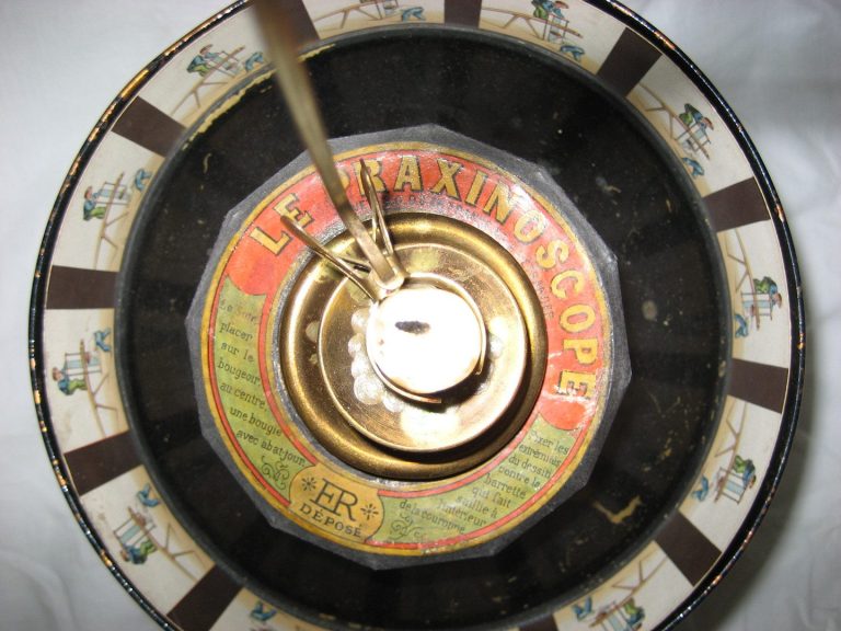 1834 : le Zootrope (ou Daedalum) reprend le principe du Phénakistiscope. Les dessins sont peints sur une bande placée au sein d’un tambour. Durée aussi brève… C’est un plan de cinéma avec une succession d’images sur une bande.