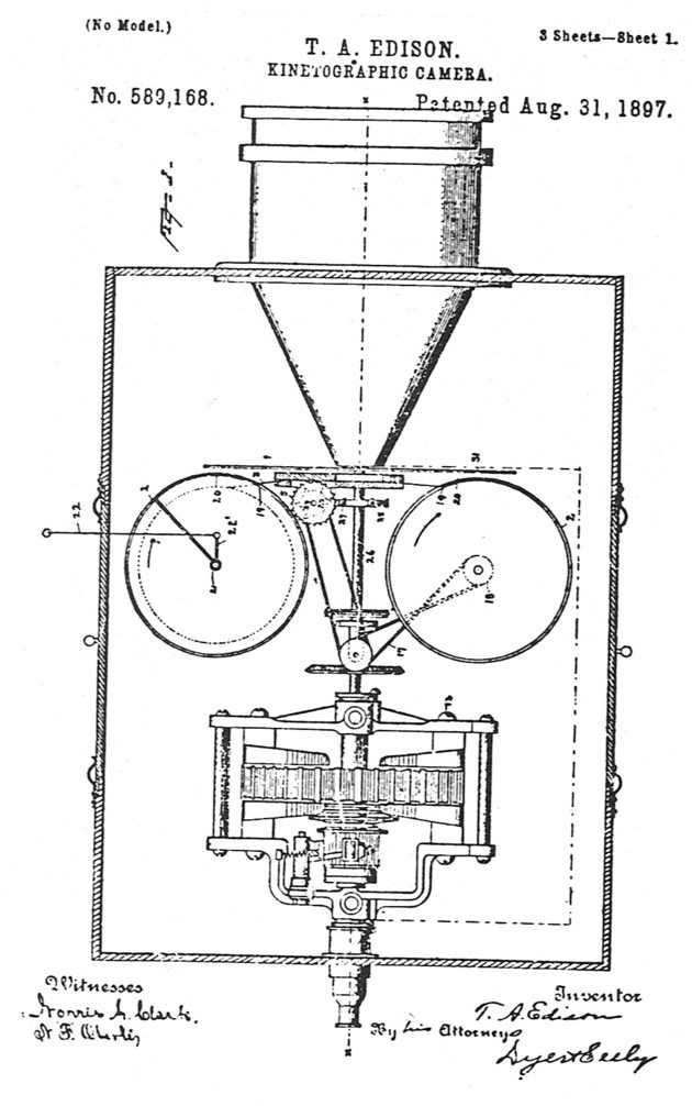 Plan de la Caméra Edison brevetée en août 1897 (doc © Cinéma d'aujourd'hui).