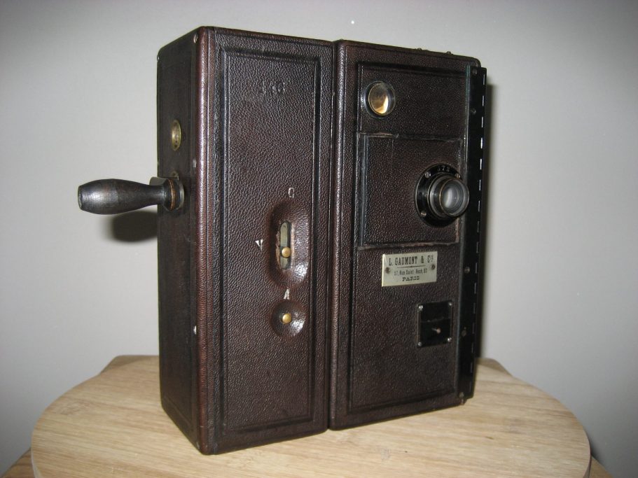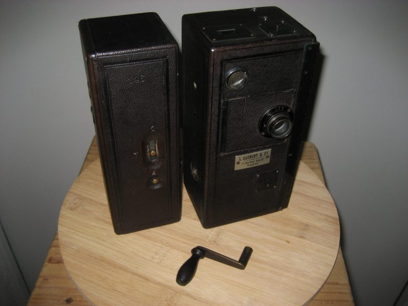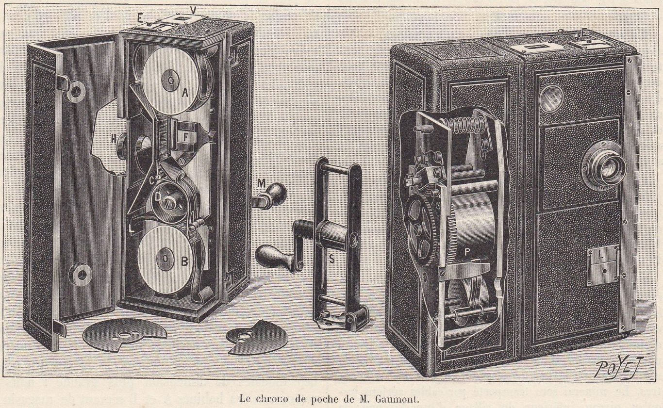 C’est en effet au tout début de l’année 1899 (6 janvier, le brevet est daté du 13 octobre 1899) que Léon Gaumont présenta à la Société française de photographie ce nouvel appareil, à la fois pour la prise de vues, mais aussi pour le tirage et la projection. De ce point de vue, ce n’était pas absolument nouveau. Par contre, la nouveauté portait sur la partie mécanique d’avancement du film : l’appareil était muni d’un mécanisme à ressort qui se remontait (mouvement analogue à ceux d’horlogeries). La caméra pouvait donc fonctionner sans l’aide de la manivelle actionnée par un opérateur.