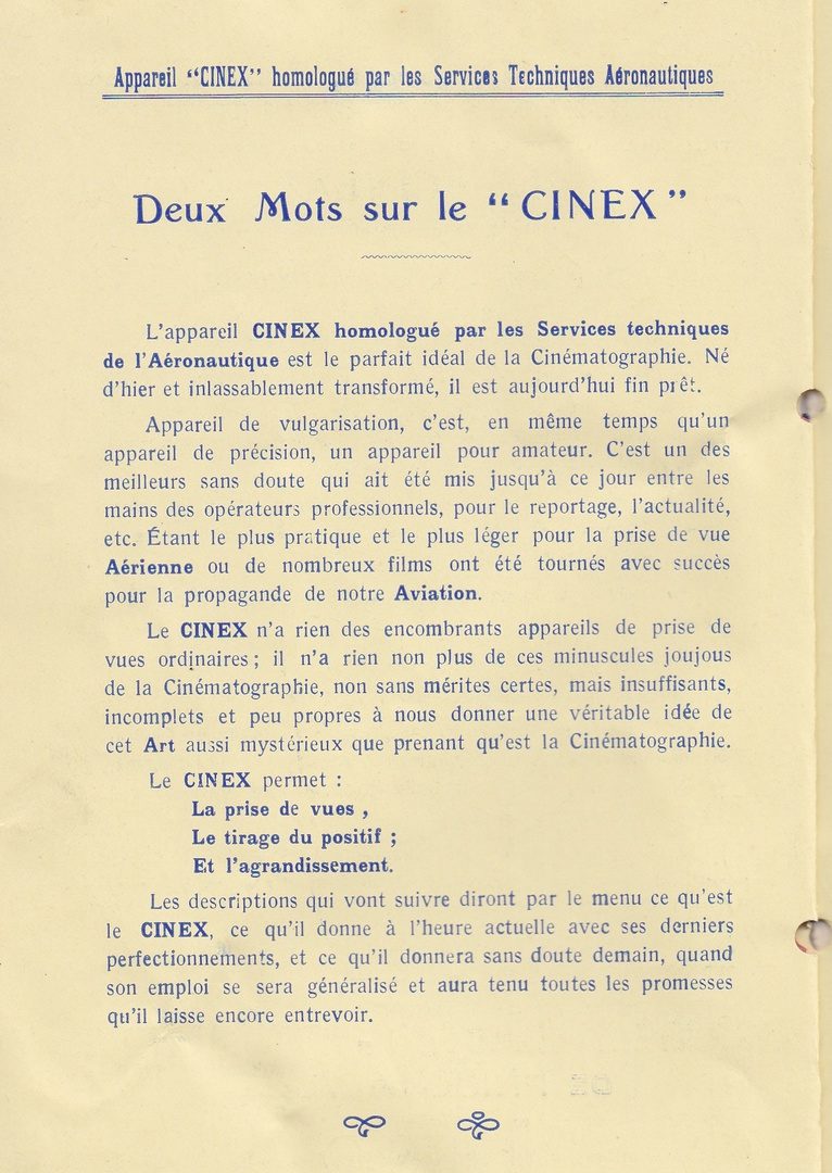 Fabriqué par les Établissements Bourdereau (rue de Belleville à Paris) à partir de 1920 (pour un premier appareil), le Cinex se veut d’une utilisation simple (ce qu’il est effectivement).