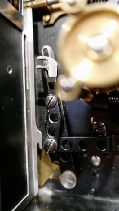 L'intérieur de l'appareil et détail sur la griffe double (photos : ©JFPB).