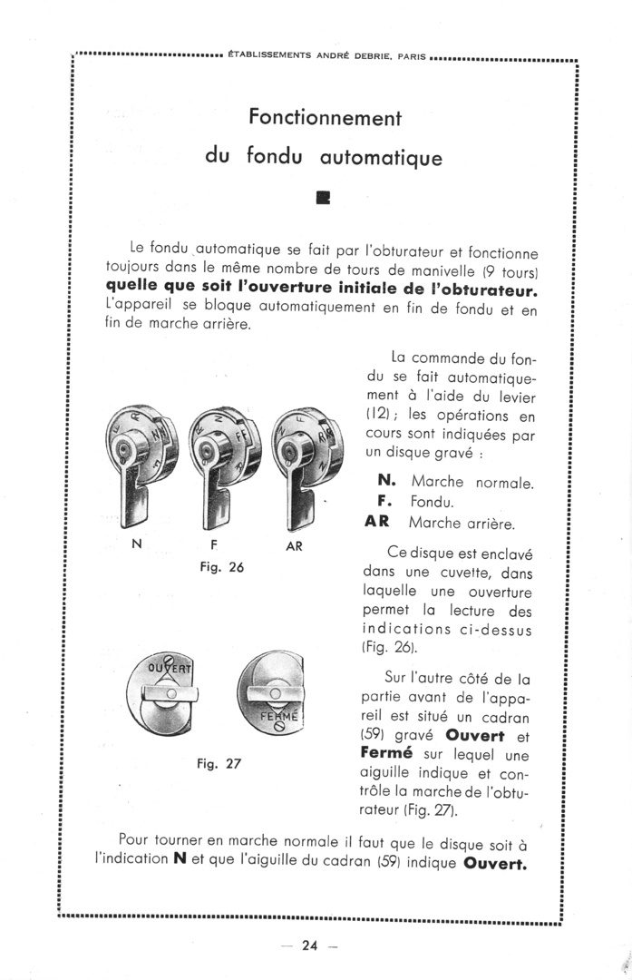Extrait du manuel de la Parvo Debrie pour la réalisation de fondus.
